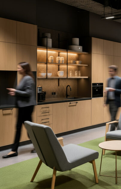 We manufacture project-based custom office furniture solutions – from workstations and meeting areas to integrated bespoke solutions, including wardrobe and kitchen area furniture. Production is tailored to the specific space, technical requirements, and workflows, and completed with professional installation.